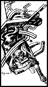 La Mariposa de las Siete Direcciones, tinta china sobre papel de José Hernández Delgadillo, ilustrando el poema de Mario Ramírez, en el libro Desde los Siglos del Maíz Rebelde. |