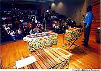 Ha saltado de la música vernácula, popular e indígena de Chiapas y Guatemala, a los grandes foros internacionales de la música sinfónica, según expresión de Victoria Rincón, alcaldesa del ayuntamiento de Tuxtla, uno de los organizadores del festival, junto con las universidades Autónoma de Chiapas (UACH), de Ciencias y Artes (UCACH) y el Consejo Estatal para la Cultura y las Artes (Coneculta). En manos de 250 intérpretes y compositores de nueve países, Camerún, Cuba, Brasil, Ecuador, Estados Unidos, Guatemala, México, Nicaragua, Japón y Polonia, la marimba produce hoy lo mismo sones indígenas mayas de Chiapas y Centroamérica, que hermosas cinquillas africanas, jazz, rock y música árabe con sintetizadores electrónicos. El efecto, en los foros estudiantiles de la UACH, UCACH, la Plaza de la Marimba y el Teatro de la Ciudad Emilio Rabasa el espectáculo ha alcanzado expresiones de sorpresa y asombro con el público de pie, largos aplausos, ovaciones y peticiones reiteradas de "otra, otra". Las noches del miércoles, jueves y viernes, por ejemplo, el Rabasa se cimbró inicialmente con la Marimba de Sololá, del pueblo tzotzil de Huehuetán, Guatemala, que interpretó cinco sones y danzas -"Nahuales", Tecomates", de los "Animales de la Noche" y de los "Policías"- causando grata impresión por la "novedad antigua" de la música prehispánica maya. Leonardo Lisando Guarcax, representante del grupo tzotzil, explicó el vínculo estrecho de la música de marimba con la madre tierra, la selva y específicamente con los árboles, quienes aportaron la madera para elaborar el instrumento. "Cuando tocamos la marimba y le sacamos los sonidos a la madera no hacemos otra cosa que devolverle parte del espíritu que antes le pedimos prestado a ellos y a la madre tierra. Porque la tierra no es de nadie y es de todos. Somos parte de todo y todo es parte nuestra", dijo Guarcax. En la misma jornada, el compositor brasileño Ney Rosauro, músico vanguardista clásico de Rio de Janeiro, interpretó dos bahianas de Heitor Villalobos y fragmentos de sus sinfonías Uno y Dos para Marimba y Orquesta, causando sorpresa en el público tuxtleco, al escuchar una nueva sonoridad arrancada del instrumento regional de Chiapas, que hasta hace apenas una décadas parecía condenado a reproducir sones de "indios", boleros, valses, danzones o chilenas. Otra de la audiciones que más impresionaron -el pasado jueves- fue la "fácil dificilidad" con que la Marimba Infantil de Copailaná, integrada por niños de entre siete y 14 años, interpretaron Ave Lira, el capricho del gran compositor guatemalteco Luis Betancourt, pieza maestra con que se prueba el máximo nivel de destreza de los marimbistas de la nación hermana de Centroamérica. Luego vino, en esa misma velada, la sorprendente actuación de la Orquesta de Marimba Corazón de Cielo de San Crístóbal de las Casas, integrada por 30 músicos que, con base en diez marimbas y el apoyo de otros instrumentos -un sintetizador, un bajo, guitarra eléctrica, safoxón, un parche, dos baterías y un tambor-, tocaron piezas árabes, flamenco y los temas principales de La Guerra de las Galaxias y de Así hablaba Zaratustra, de Richard Strauss. Esta interpretación, al igual que una de las gitanerías de Ernesto Lecuona, El Manicero de Moisés Simons y el Cumbachero de Rafael Hernández, interpretadas en marimba por el maestro cubano Jesús Morales, fueron celebradas por el público de pie, con ovaciones y aplausos por más de dos minutos. Morales, quien fundó la Marimba Juvenil de Chiapas, interpretó antes los Caprichos Uno y 17 de Nicolo Paganini, compositor italiano de principios del siglo XX que escribió predominantemente para violín, instrumento con grandes diferencias de sonoridad con respecto a la marimba. Uno de los mayores atractivos del III Festival Internacional de Marimba, en el que 45 de sus 242 participantes son indígenas de América y Africa, fue la presentación del grupo Kiss Kiss Balafón, de Camerún, toda vez que estos artistas utilizan la "marimba africana", una caja de madera con tablillas de percusión y "tecomates" o calabazas como cajas de resonancia. Esta fue la segunda participación de Kiss Balafón en Tuxtla Gutiérrez, a diferencia de los marimbistas Katarzyina Mycka, de Polonia, Bambuco de Ecuador y el grupo de Víctor Mendoza de Estados Unidos, quienes por primera vez asistieron al festival para tocar su instrumento, dictar clínicas talleres y dictar conferencias magistrales. El III Festival Internacional de Marimbistas, iniciado el 4 de junio, concluyó el domingo 8 con un concierto de las marimbas Infantil "Amigos del Sol", Hermanos Palomeque y Aguilas de Chiapas, del concertista japonés Hidemi Murase y Kiss Kiss Balafón, y con la entrega de premios a los triunfadores de los concursos XIX Estatal de Chiapas y III Nacional de Marimba. Se llevaron a cabo en la misma jornada, homenajes a los dos más grandes músicos de marimba de Chiapas: los maestros Zeferino Nandayapa y Arturo Solís Alvarez, quienes mucho han contribuido a la internacionalización de la marimba como instrumento de música popular y de concierto.