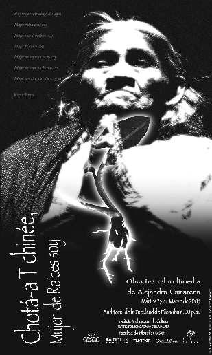 Esta es una introducción a la obra de teatro sobre María Sabina que se presentó en esta exposición homenaje a la sabia abuela mazateca. Nierika Teatro Exploración y el Presentan: "Chota-a T chinée, mujer de raíces soy..." acto teatral multimedia, en donde una mujer contemporánea "Renata", decide emprender un camino de reconocimiento de si misma,y en el camino decide despojarse de lo que ya no puede seguir cargando, como es la opresión, la violencia, la injusticia hacia las mujeres, se dispone a sanar todo ese pasado que "le duele". Ella tiene un llamado de María Sabina, la legendaria mujer de conocimiento mazateca que ella sigue en donde se interna en el mundo mágico de las montañas mazatecas para iniciar su "sanación", ella conoce las medicinas antiguas y le empiezan a enseñar un mensaje y a revivir su memoria ancestral. La obra es un llamado a revalorar nuestro ser femenino, así como a nuestras abuelas de conocimiento representadas por María Sabina, y es un tributo a las mujeres de conocimiento y las mujeres y su arte de curar. Bajo la dirección de Alejandra Camarena este acto multimedia nos muestra de manera rica y rítmica parte de la cosmovisión de la Chotá-a T chinée María Sabina y su cultura Mazateca, haciendo énfasis en el uso y costumbre de los hongos sagrados que le permiten al personaje y publico entrar al mundo mágico de una cultura de origen ancestral, rico en signos y significados de fuerte carga histórica y antropológica. Trabajo escénico sugerente y de calidad que además cuenta con la video realización de Jarco Amézcua, que integra el documental de Nicolás Echevarría, los rezos y cantos de María Sabina y la música original de Yuri Yaber. Acérquese a las raíces de esta cultura mexicana y conozca mediante esta puesta en escena dinámica y profunda, el mundo mágico y la palabra visionaria de una mujer que ya forma parte de nuestra rica tradición e historia nacional. Además, al finalizar el acto teatral multimedia, la autora y directora de este montaje, en compañía del video realizador, ofrece una conferencia y dialogo con el publico sobre el proceso de montaje y el tema eje sobre el cual se estructura y gira la puesta en escena. |